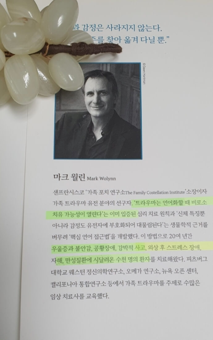 저자는 직접 임상 치료사로 일하면서 샌프란시시코에 연구소를 두고 관찰한 내용과 신경과학 및 후성유전학, 언어에 관한 과학을 종합하여 이 책을 썼다. 독일의 전문 치료사 베르트 헬링어는 가족 내 트라우마가 대물림한다는 것을 심리적, 신체적으로 어떤 영향을 미친다는 것을 밝혔다. 이 책은 여러 사례와 함께 스스로 트라우마의 흔적을 찾을 수 있는 질문지로 되어 있다. 알수 없는 감정에 휩싸인다든지 할 때 저자의 안내를 따라가다 보면, 스스로 어떤 패턴을 쉽게 찾을 수 있을 것이다. 저가의 핵심 작업은 대물림의 감정이나 행동을 식별하여 그 이어짐을 끊는 법에 초점을 두고 있다. 우리의 패턴의 상당부분이 자신의 가계의 윗세대에서 물려받은 것을 언어의 흔적으로 살펴 볼 수 있다는 매우 흥미로운 책이다. 사실 이 책을 보지 않더라도 대부분이 삶으로 알고 있다. 집안내력이라는 단어를 우린 사용하고 있지 않은가? 왠지 바꾸고 싶지만 잘 안되는 경우 우리 내면에 뿌리깊게 잡혀있는 신념화 된 생각들 관념들 믿음의 대전제를 건들여야 한다. 그 깊은 속으로 들어가려면 작은 호기심보다 는 더 강한 열망 같은게 필요하다. 다른 방향으로 나아가고자 하는 의지가 있다면 이책은 인생에서 광맥을 찾은 기분이 들 것이다. 우리가 듣지 못한 스토리안에서 그리고 우리가 태어나기 전 가족에게서 내려온 그 대물림을 이제 바꿔보자. 불편하다면 말이지.